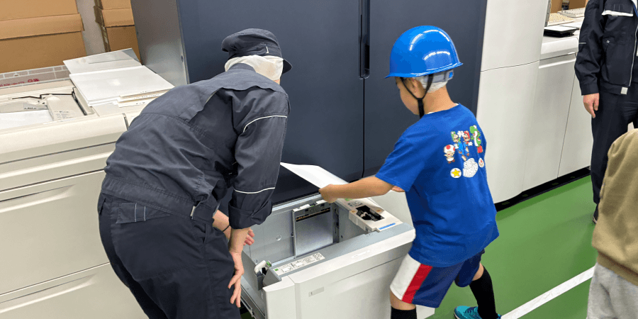 仕事体験①: オンデマンド印刷機の給紙やスタートボタン操作に挑戦