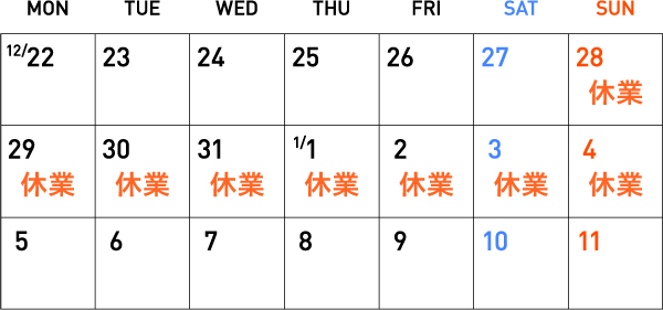 ■ 年末年始休業期間 2025年12月28日(日)~2026年1月4日(日)